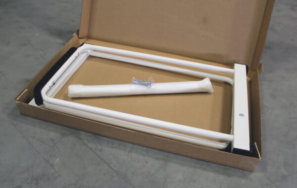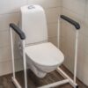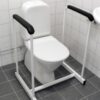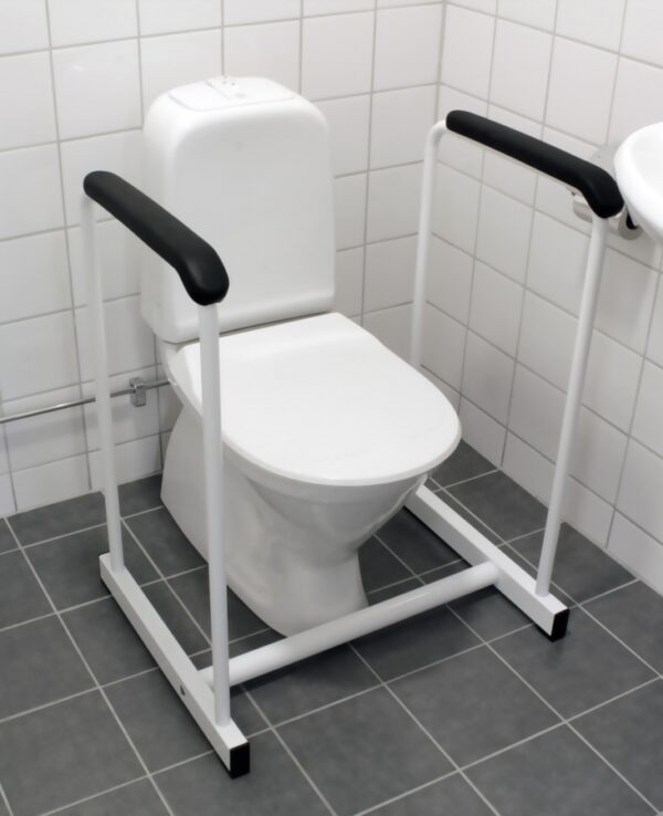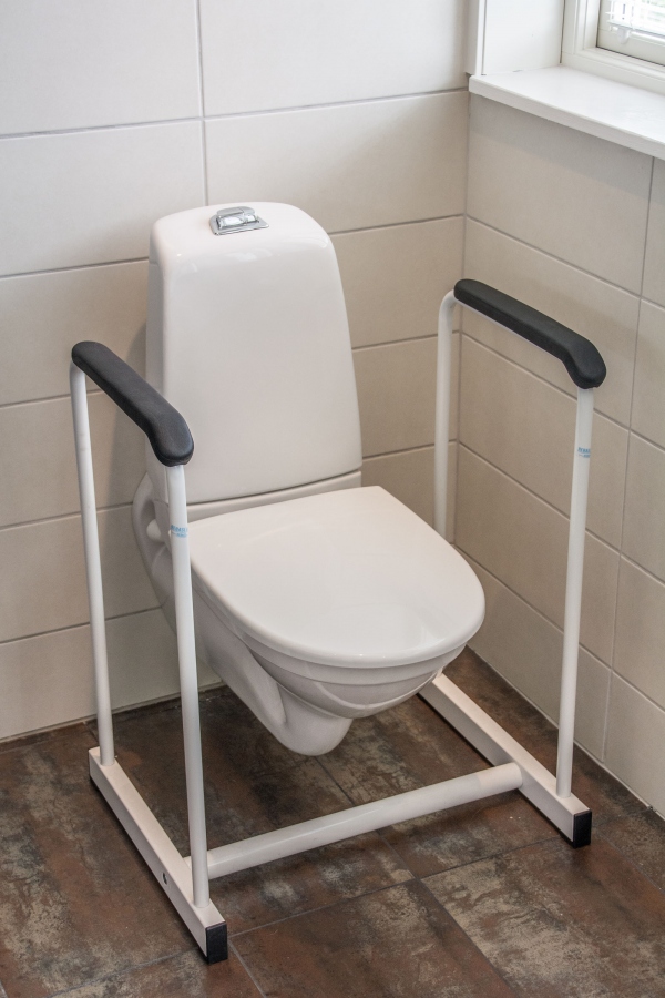 Fristående armstöd som inte kräver någon fast installation. Armstödet passar till såväl vägghängda som golvstående klosetter.