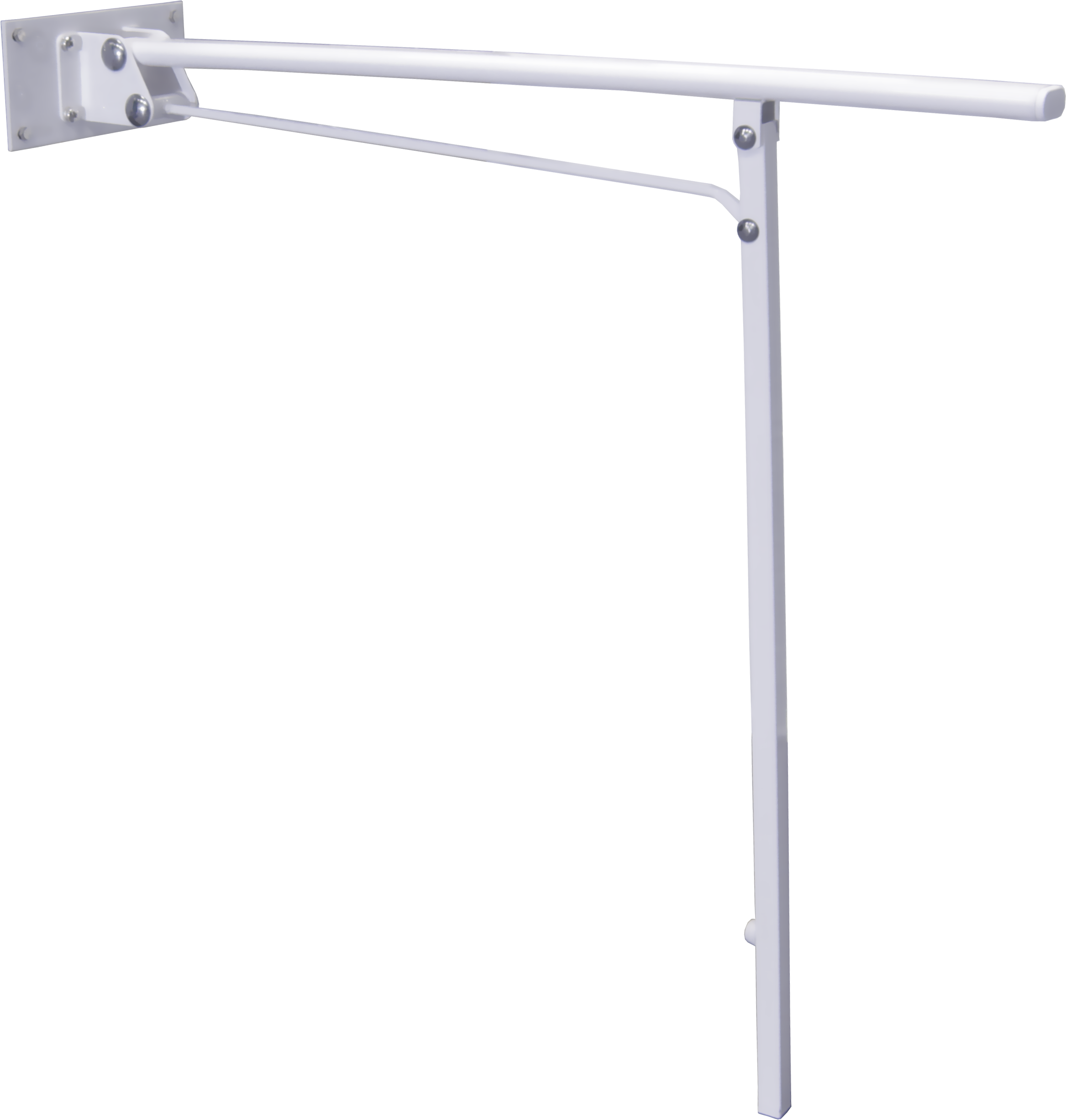 Toalettarmstödet är uppfällbart mot vägg. Kan förses med toalettpappershållare. Tillverkad i stål och ytbehandlat med pulverlack.