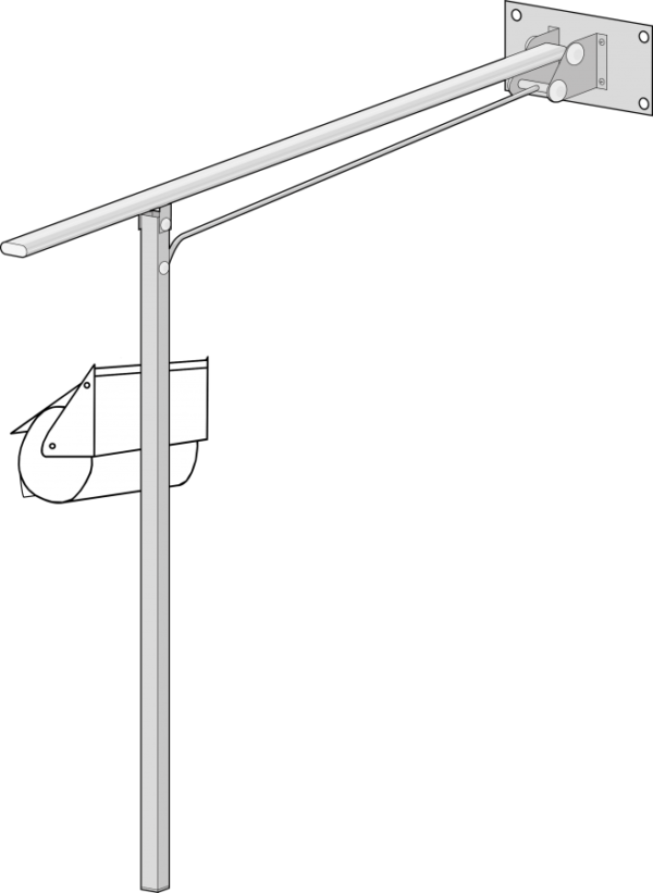 Toalettarmstödet är uppfällbart mot vägg. Kan förses med toalettpappershållare. Tillverkad i stål och ytbehandlat med pulverlack.