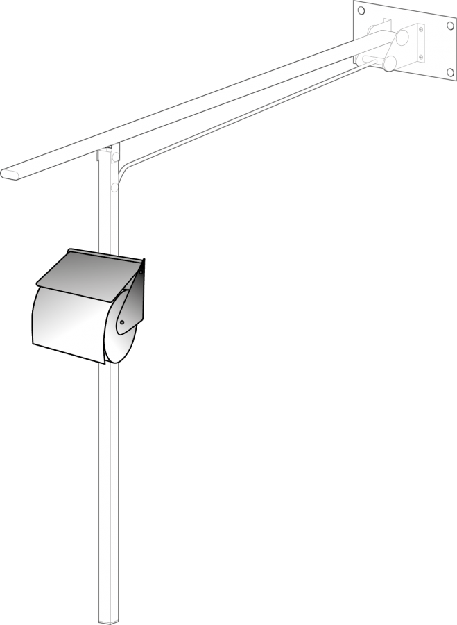 Toalettarmstödet är uppfällbart mot vägg. Kan förses med toalettpappershållare. Tillverkad i stål och ytbehandlat med pulverlack.