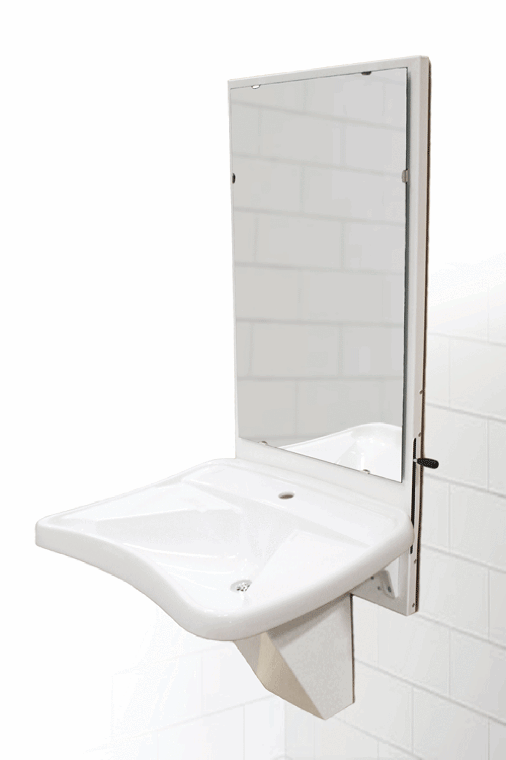 För att öka säkerheten kan tvättstället förutom i vitt utförande beställas i varselfärg ljusblå. Kan även beställas i svart.