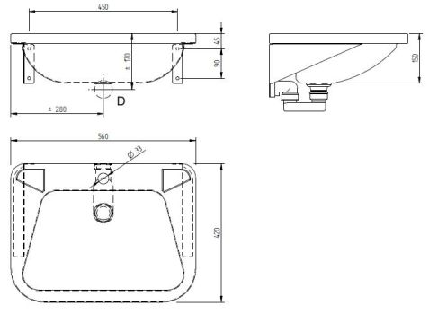 Rosftfritt tvättställ av standardmodell. Centrerat hål för blandare. Blandare ingår ej.