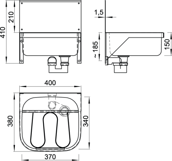 Utslagsback B = 400, D = 380